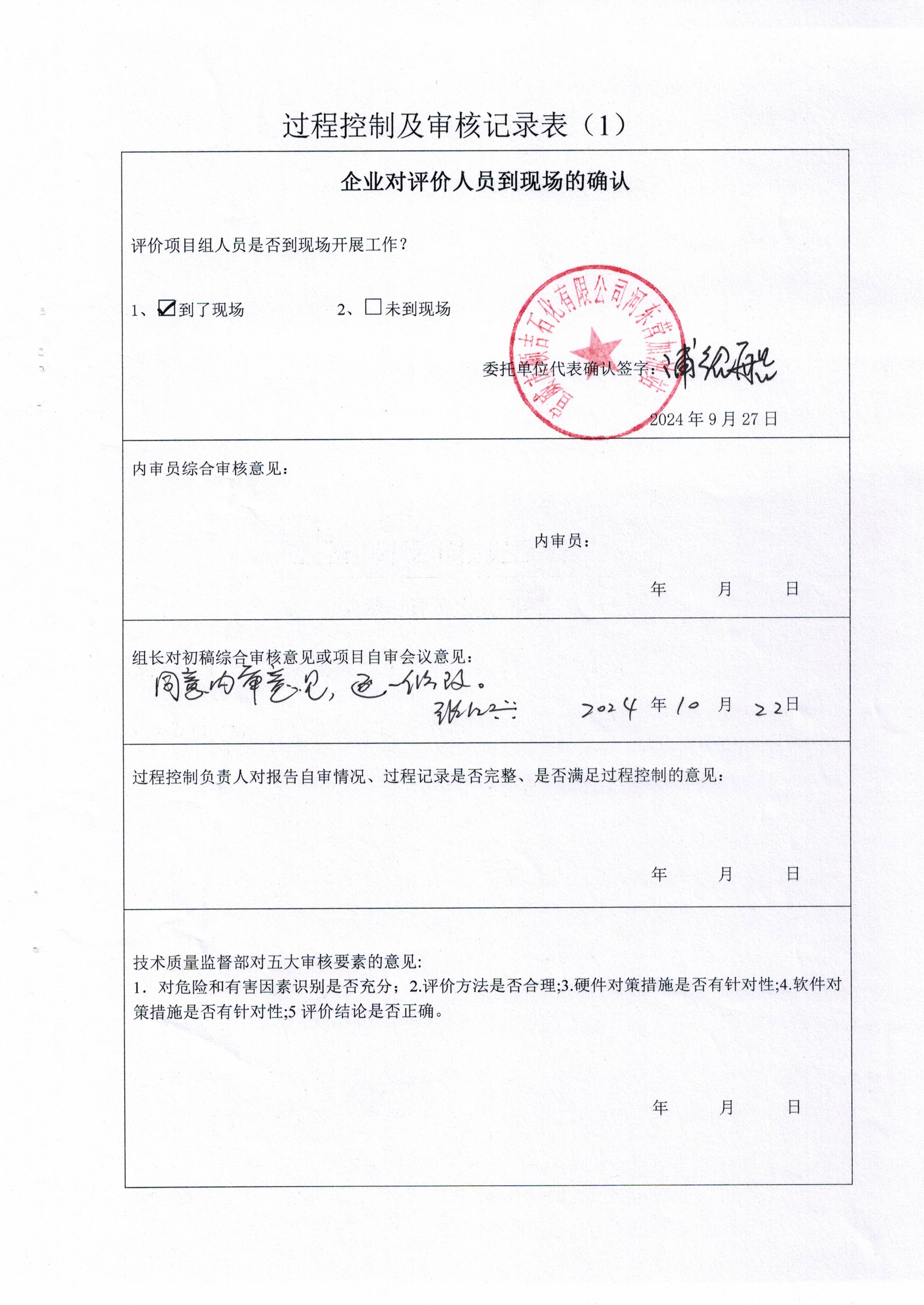過程控制審核 | 內(nèi)審意見(√ 通過 口 不通過 ) √ 是 口 否 | |||||||